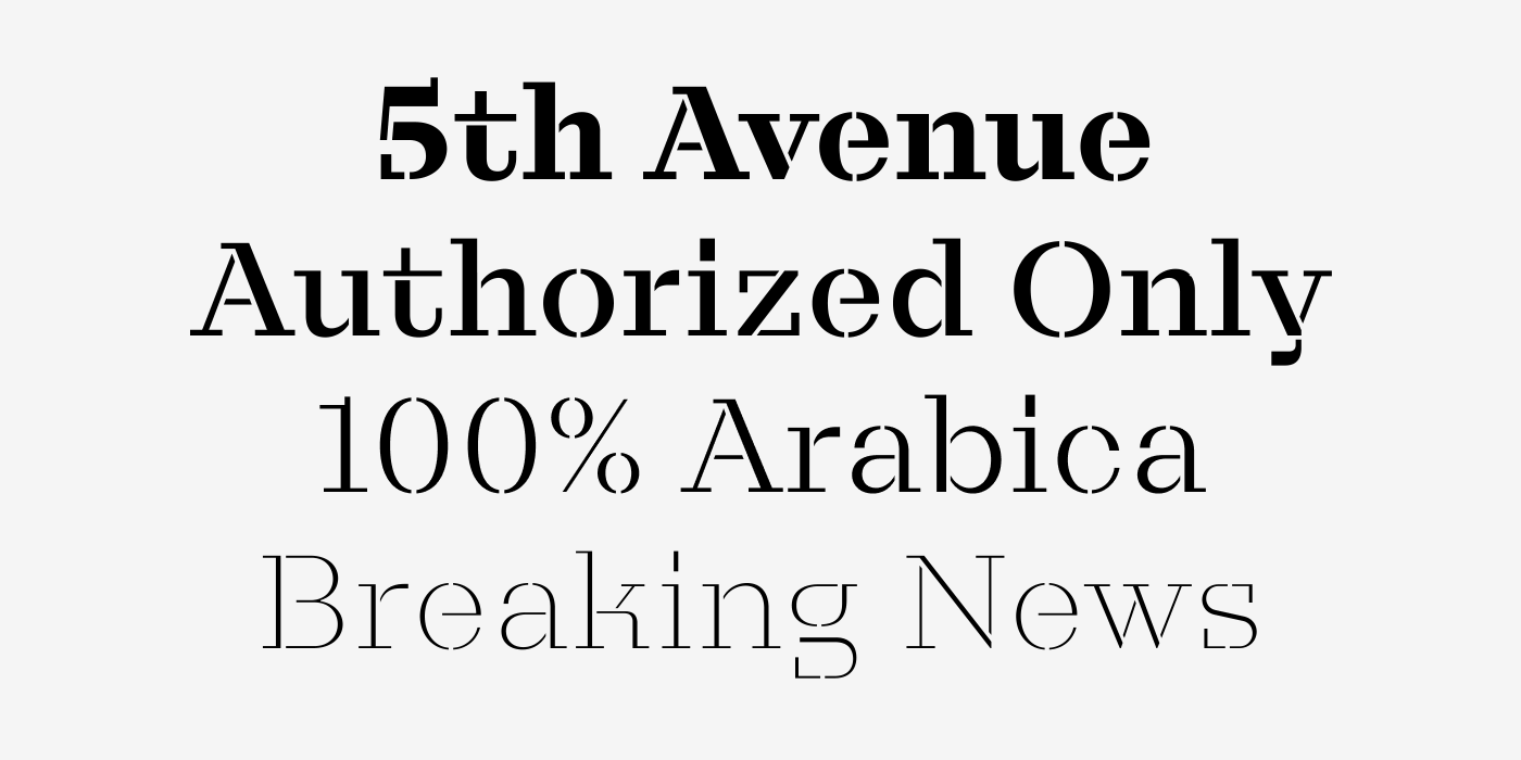 Taler Stencil, like the non-stencil serif, comes in seven weights ranging from Thin to Black and is available as a variable font for added versatility.